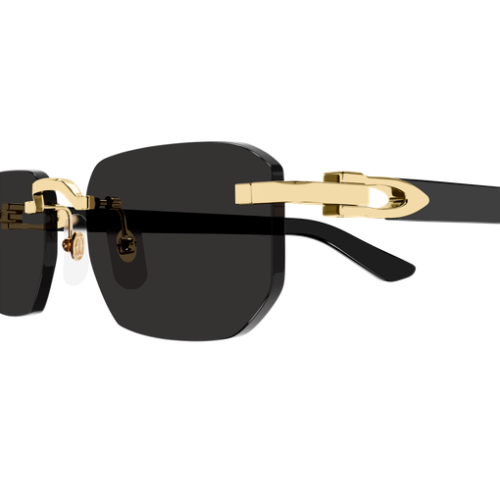 Contemporary yet sophisticated reinterpretation of the historical Décor C temple in combi version. Easy-to-wear soft rectangular shape in rimless construction. Iconic Décor C detail perfectly inserted in the acetate temples as aesthetical and functional element of the hinge. Precious finish in gold or platinum paired with new pearled acetate temples on some SKUs.
