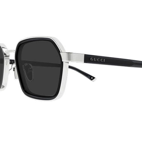 Combi styles characterized by the gucci institutional logo, a visible wirecore running through the temples, and a metal endtip detail. Geometric rectangular shape. Cool color palette featuting both dark-toned colors and havanas.