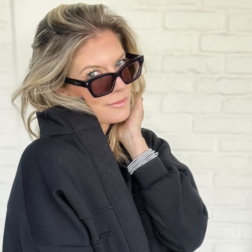 Acetate styles with a bi layered color effect which guarantee a cool look and feel. Narrow rectangular shape. Gucci lettering logo placed under the laque of the construction. Commercial yet cool color palette featuring at least two color combinations.