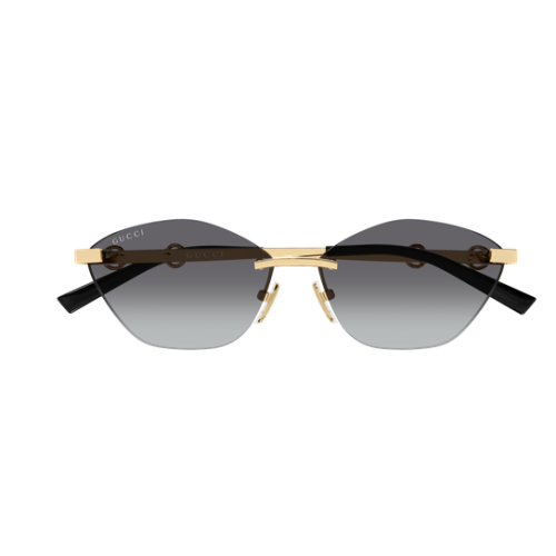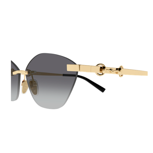 Concept inspired by the equestrian world, featuring a glasant construction and the iconic horsebit detail passing through the temple. Geometric cat-eyed shape. Optical version in a gold galvanic, some skus present the enamel detail on the temples.