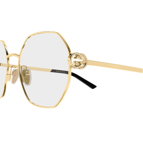metal construction starring the cut-out interlocking g logo detail on the temples. Color palette features either gold or silver galvanic.