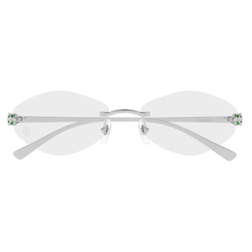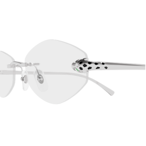 Lighter and more comfortable aesthetic of Panthère Massai inspired by Cartier’s jewelry. Modern edgy rimless construction with the three-dimensional Panthère head on the front to ensure an authentic look. The slimmer metal temples recall the Panthère head and tail, and they are decorated with precious hand-made enamel spots. Precious finish in gold or platinum.