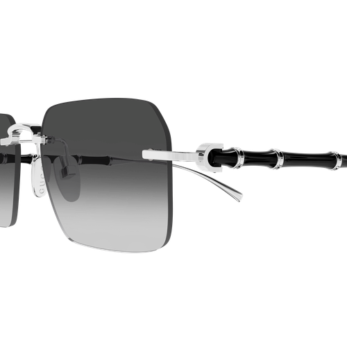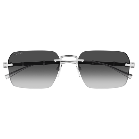 The bamboo metal is the high-end story of the collection, inspired by the iconic bamboo sign. Narrow squared shape. Rimless construction with metal temples and the Institutional Lettering Logo.