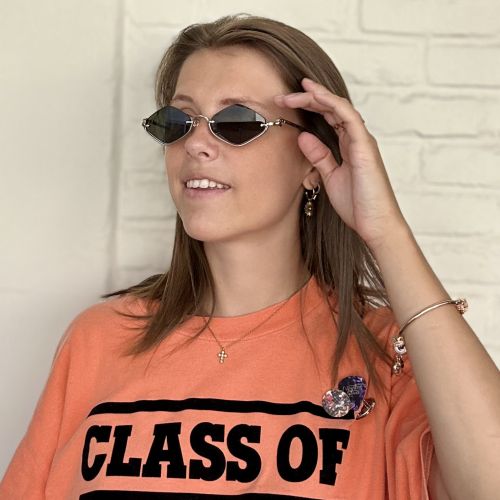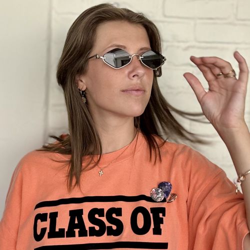 Tiny and delicate semi rimless construction in metal with unique logo development rotated in a vertical position. Rhombus shape in metal. Vertical GG running development. Shiny color palette paired with commercial yet unique colored lenses with a Guccissima sku in the assortment.