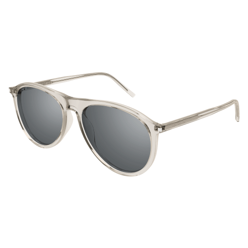 PILOT SHAPE WITH FLUID LINES CHARACTERIZED BY A THIN ACETATE CONSTRUCTION. THE STYLE IS ENRICHED BY THE ICONIC CORNER ANGLE AT ITS LIGHTNESS. THE SAINT LAURENT LOGO IS LASERED WITHOUT COLOR ON THE THIN ACETATE TEMPLES.