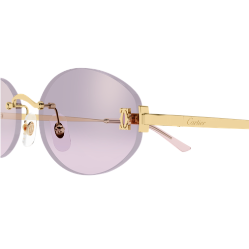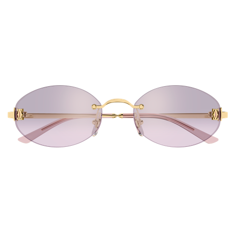 Light and modern Double C metal interpretation with the iconic logo detail on the front. Unisex narrow oval shape in rimless construction for a contemporary look. Light colorful lenses perfectly match the frame conferring a fresh look.Precious finish in gold combined with transparent acetate temple tips to guarantee comfort.
