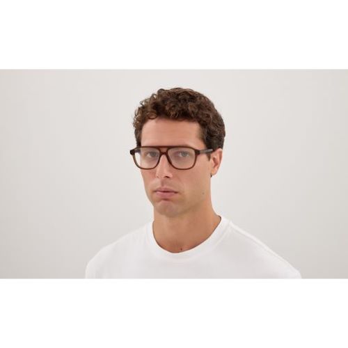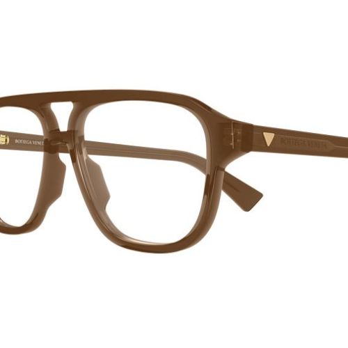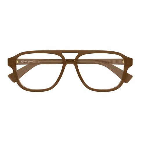 Full acetate and light masculine double bridge style. Triangular metal stud on temple. Bottega Veneta logo on temple.