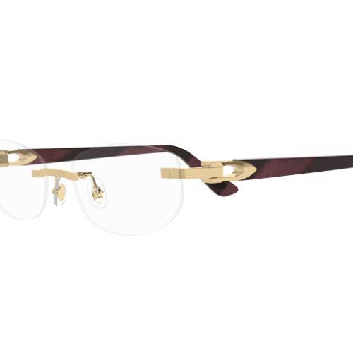 Classic rectangular shape in a rimless construction. Contemporary yet sophisticated reinterpretation of the historical C Dècor detail. Iconic C Dècor detail perfectly inserted in the acetate temples as aesthetical and functional element of the hinge.
