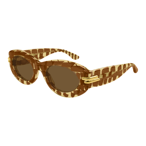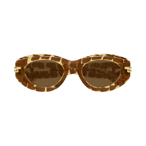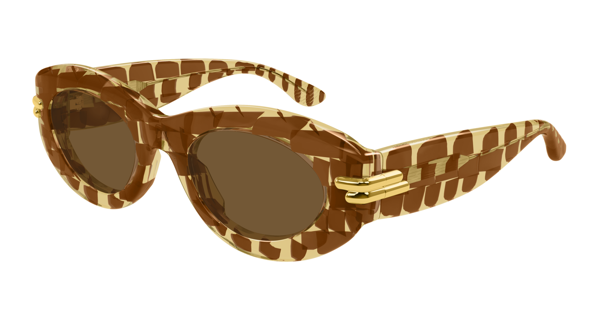 Feminine cat eye shape. Rich metal Ribbon element with bumpy surfaces. There is a bevel on top of the lenses that lightens the look.