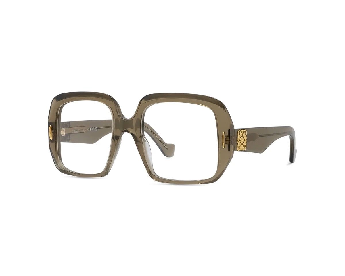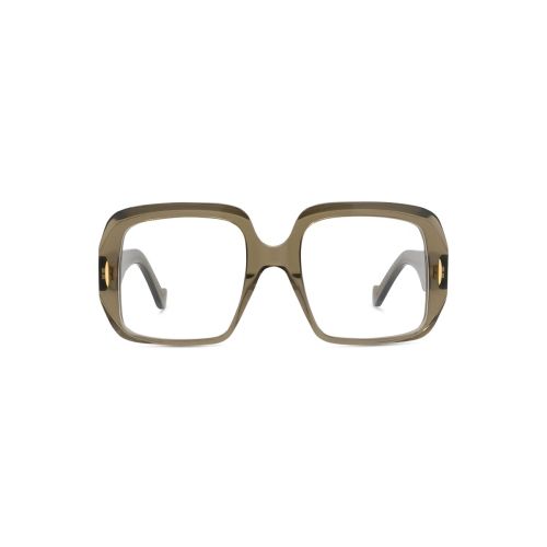 Dit oversized vierkante montuur van LOEWE is een echte blikvanger. De uitgesproken vorm zorgt voor een krachtig en modern silhouet, terwijl de iconische Anagram-details op de veren meteen de luxueuze signatuur van het merk verraden. De subtiele metalen afwerking op de superplatte voorkant is geïnspireerd op de Sun Screen-collectie en geeft het geheel een verfijnde, eigentijdse touch.