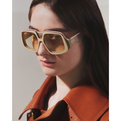 Deze stoere en uitgesproken zonnebril van LOEWE is een echte eyecatcher. Met zijn krachtige lijnen en iconische Anagram-details op de veren valt hij meteen op.