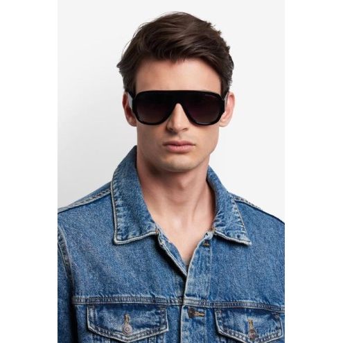 Designed to lend daily looks a fresh burst of character, the new men's eyewear collection evolves the daring and enduring vision of Marc Jacobs. Offering a timeless shape in sleek acetate, these sunglasses embrace the brand's quintessential styling with their bold proportions and signature accents: the distinctive metal plaque and the Marc Jacobs logo on the temples. Enhanced by seasonal colour combinations, selected styles are equipped with clip-on lenses.